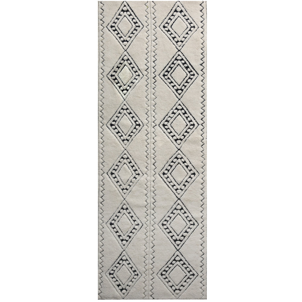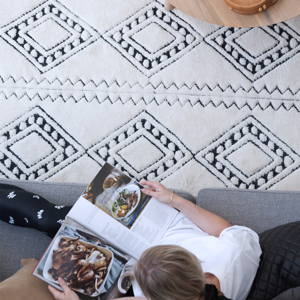 The Honeycomb rug is a modern geometric take on Berber styled vintage pieces. Its super soft, rich weaved wool pattern reflects love of global style, for the traveler within. This precisely hand woven pattern is available in both the striking cream/charcoal and the softly toned pewter/cream colourways.