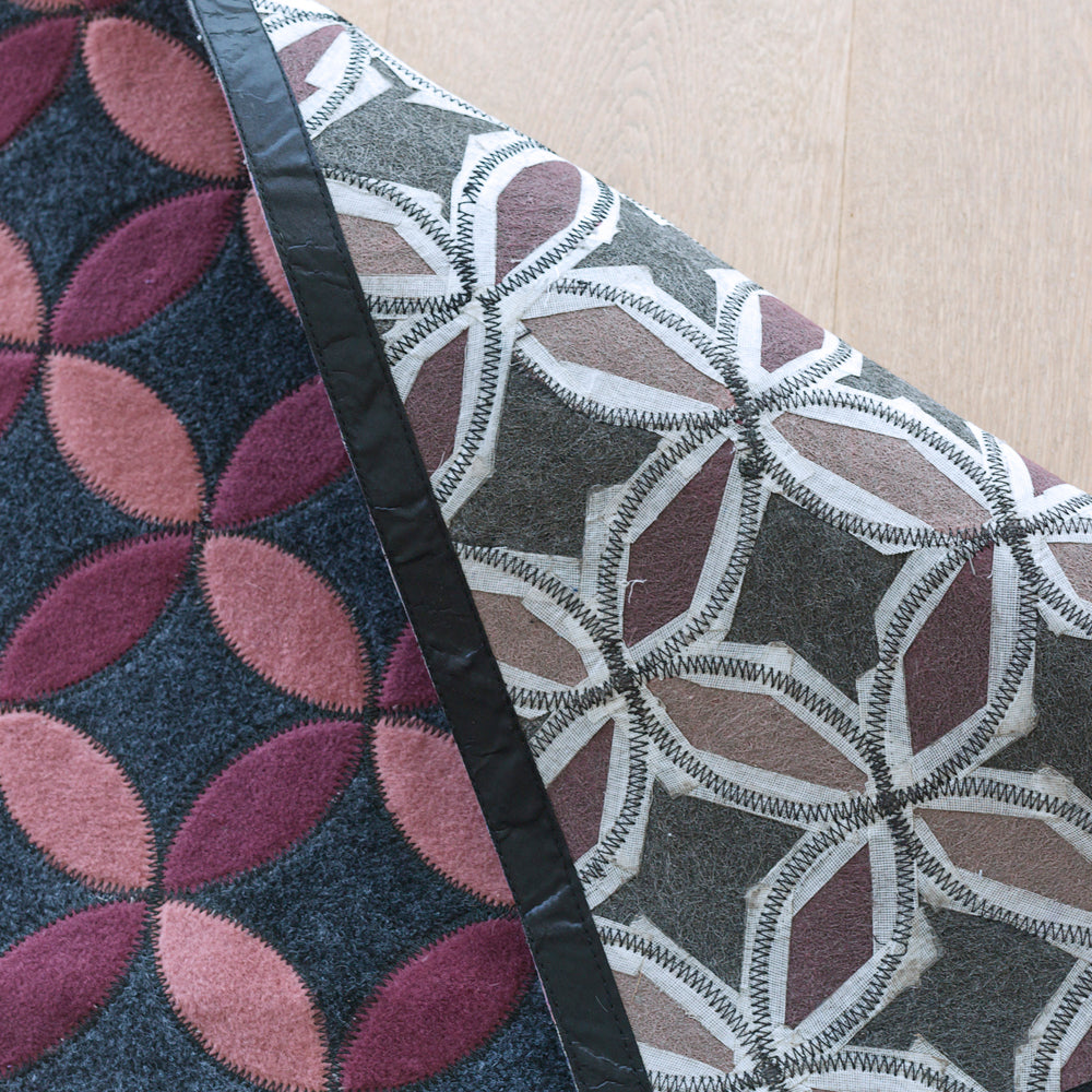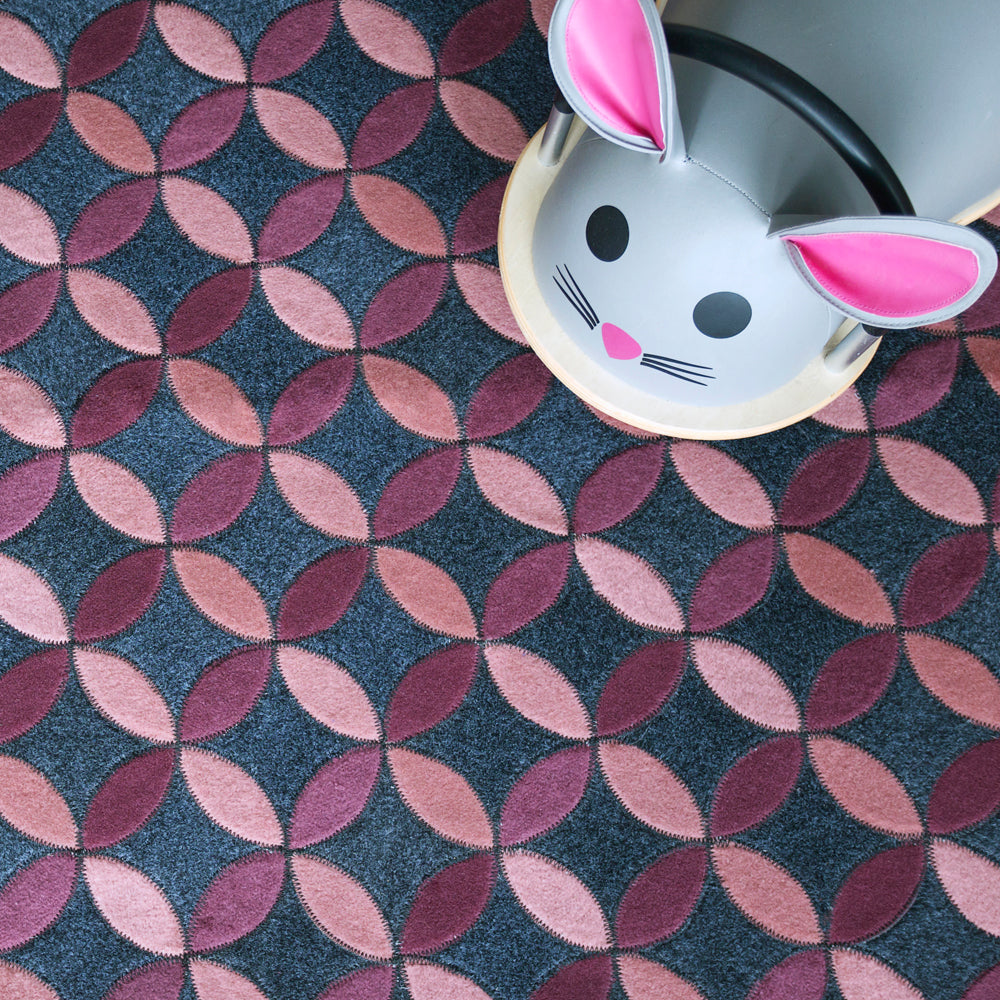 With bright jewel tones and a petal shaped trailing pattern on a marled charcoal base, the Aladdin is a fun, yet sophisticated rug for any setting.