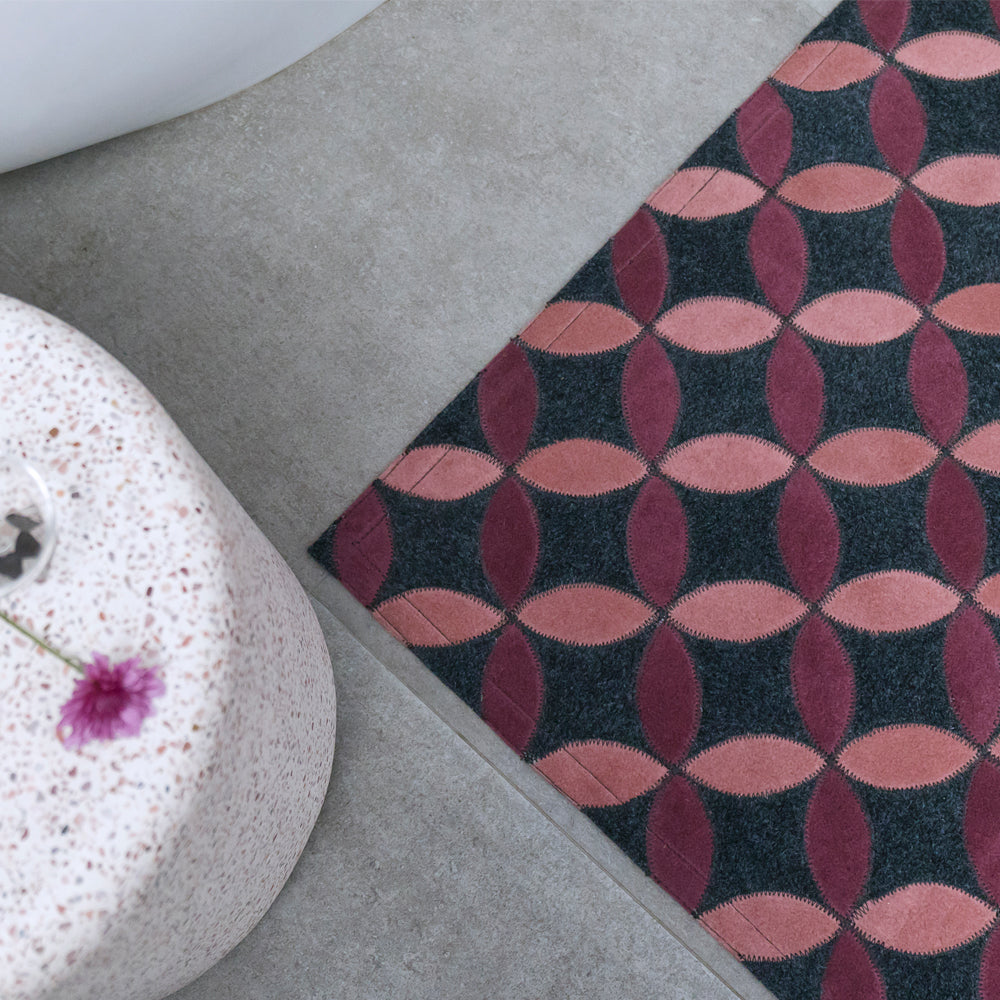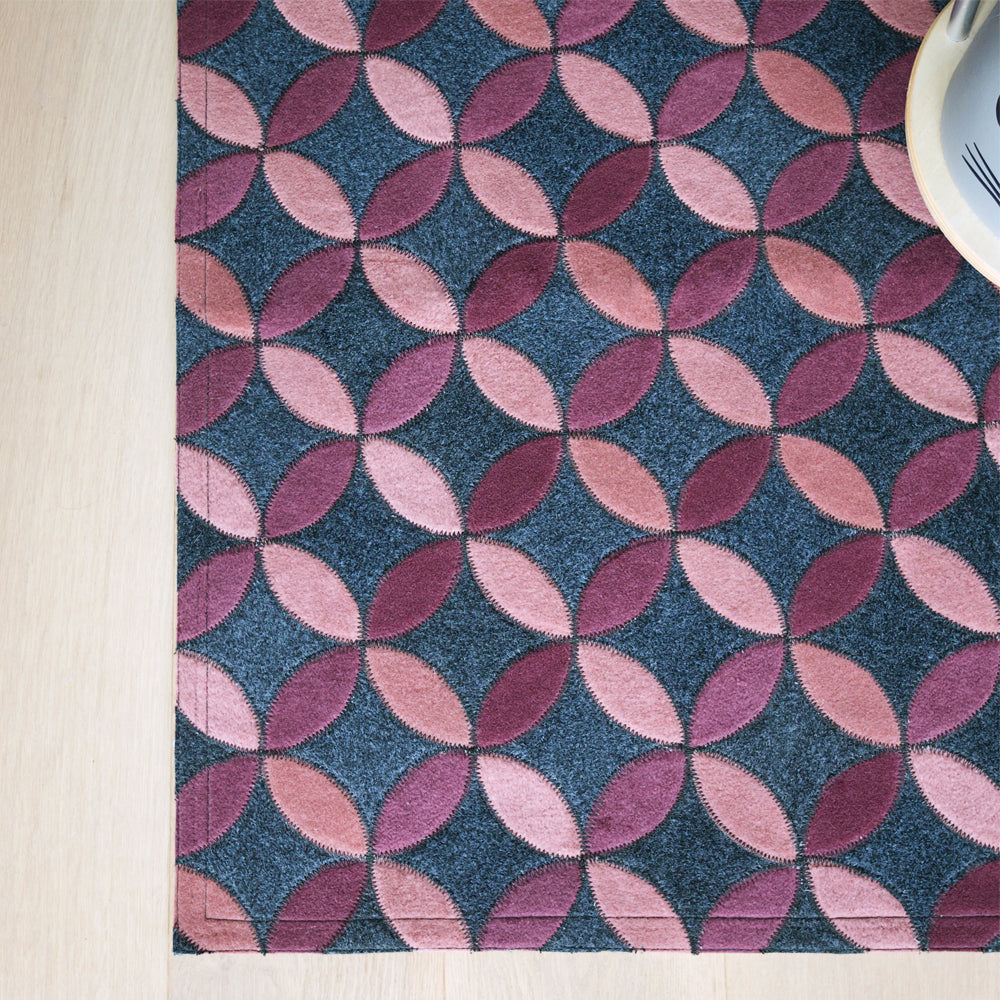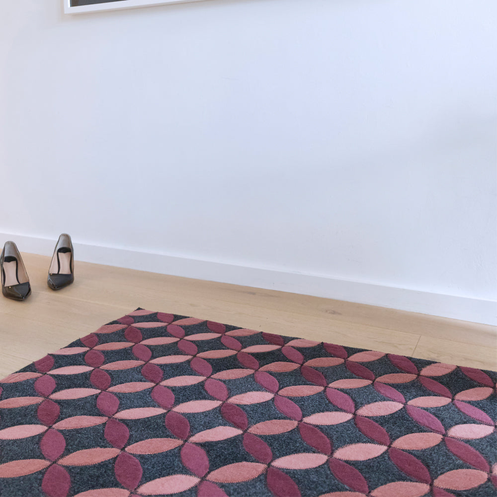 With bright jewel tones and a petal shaped trailing pattern on a marled charcoal base, the Aladdin is a fun, yet sophisticated rug for any setting.