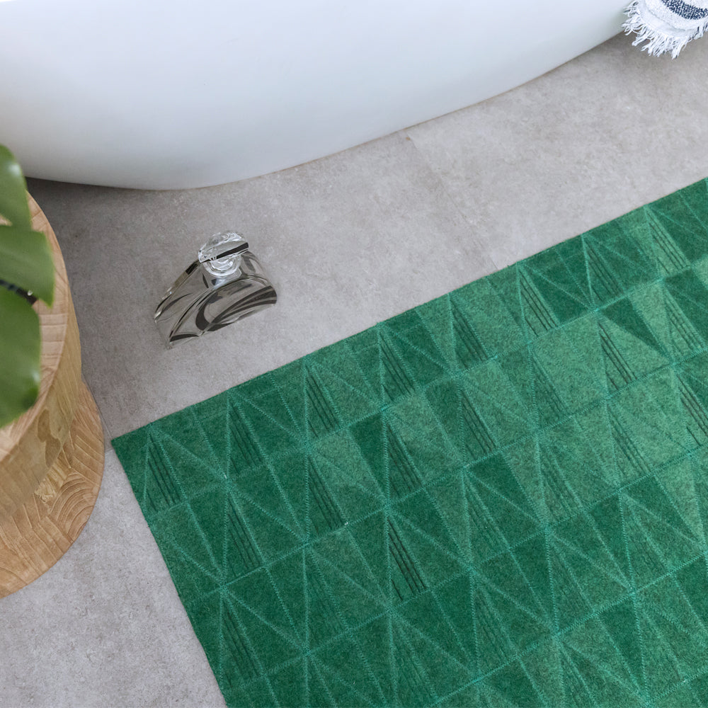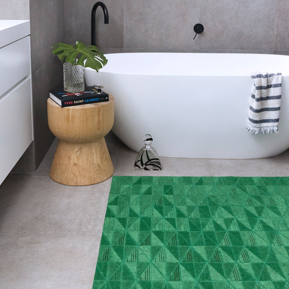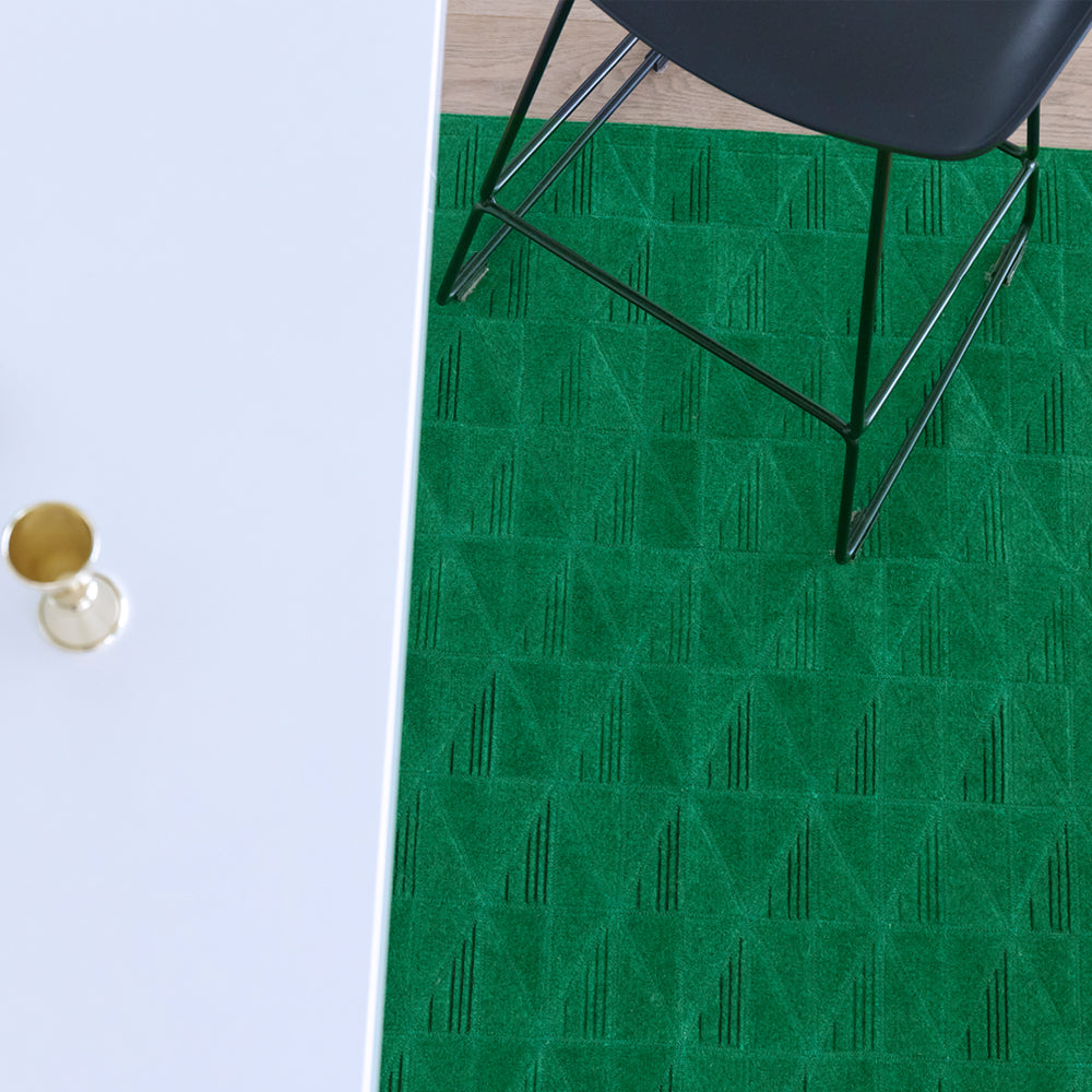With bold block jewel colours and spliced angles, the Fragment rug features our signature laser burn technique, used to create a striking fine diamond pattern.